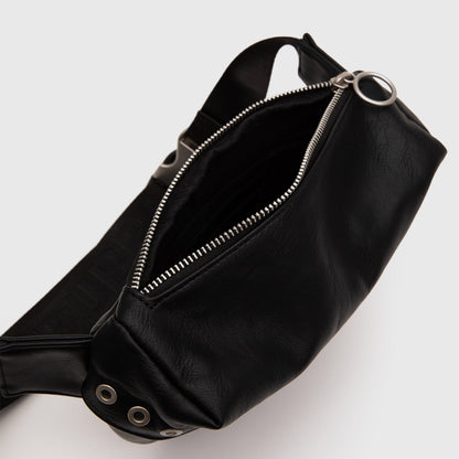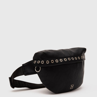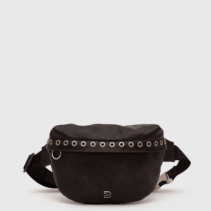 ¡Actitud rockera en movimiento! El Banano Gibson destaca por su confección en cuero vegano y su ribete frontal con ojetillos metálicos. Elegante pero con mucha onda, es el accesorio ideal para quienes buscan un estilo audaz y funcional, perfecto para brillar en cada festival. ¡Lleva tu personalidad a todos lados!